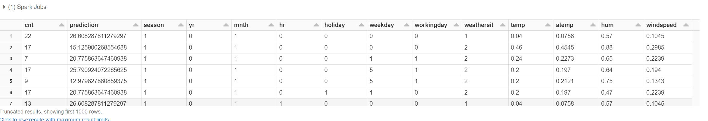 display(predictions.select("cnt", "prediction", *featuresCols))
