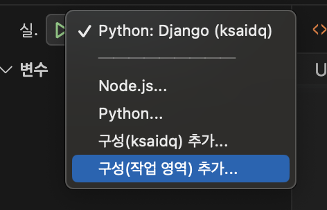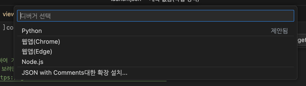 해당 디버거 선택화면에서 Django를 입력하거나 python을 선택해서 Django를 선택해주시면 됩니다.