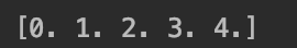 0부터 4까지 5개의 값을 생성해서 값을 출력하는 소스입니다.