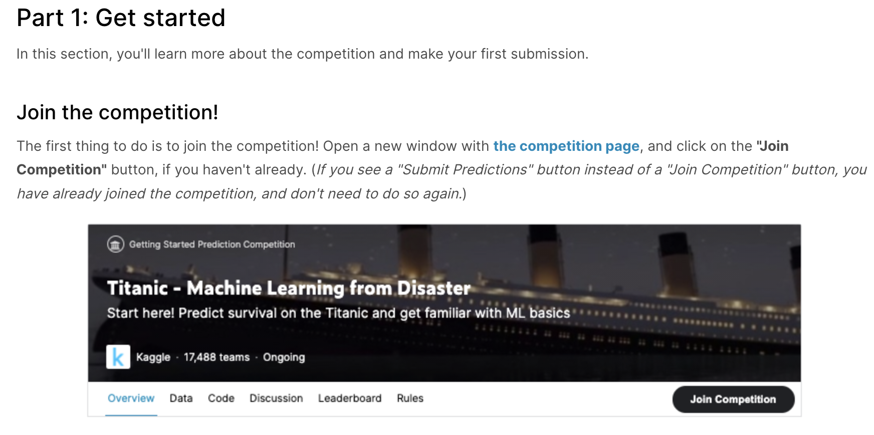 파트 1에서는 경쟁에 참가하는 방법에 대해서 설명해 주고 있습니다.
