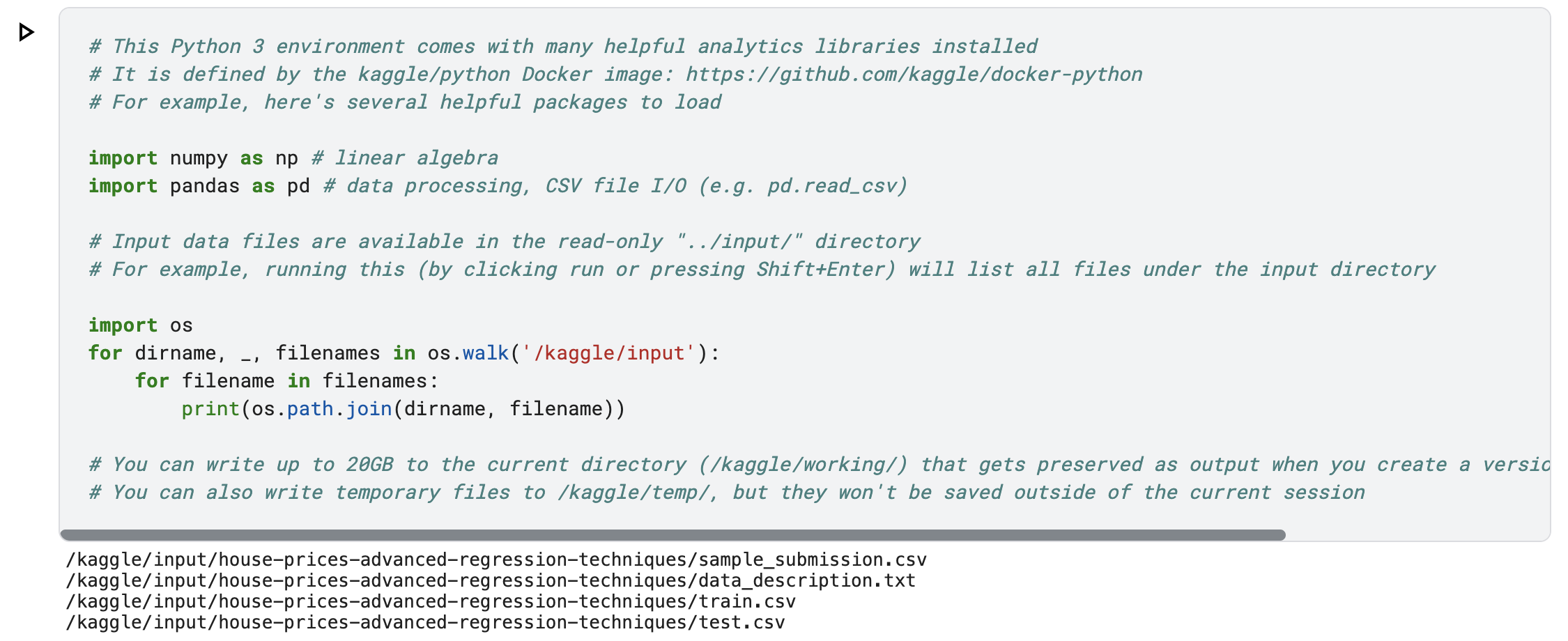 %matplotlib inline - Kaggle이 Jupyter NoteBook 환경인데 해당 환경에서 그래프를 인라인으로 표시되도록 지정하는 명령어입니다.