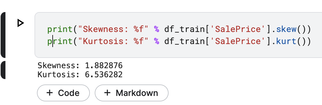 해당 데이터의 왜도는 1.88..., 첨도는 6.53...을 타나내고 있는것을 확인할 수 있습니다.