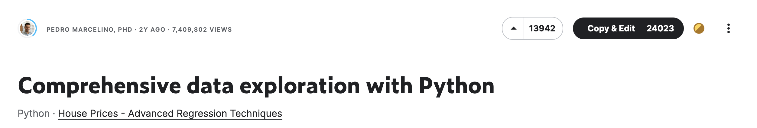 좋아요를 13942개, Copy & Editd을 무려 2만4천개 가량 받은 NoteBook입니다.