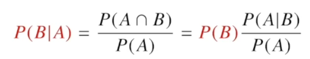 - 2개의 사건에서 B가 일어난 상황에서 A가 발생하는 확률을 의미