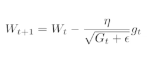 - Adagrad - 변화가 큰 것들은 변화를 줄이고 변화가 작은것은 변화를 크게! G가 변화값, G의 값이 계속 적으로 커져서 뒤로 갈수록 학습이 멈춤