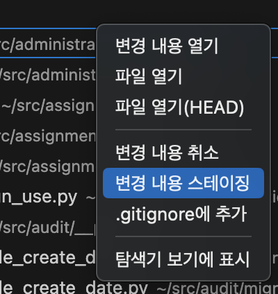 그럼 이렇게 스테이징된 변경사항 항목에 추가됩니다.