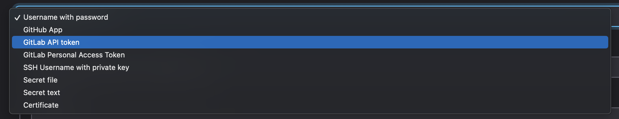 Kind를 클릭해보면 여러 항목이 보이실 텐데, GitLab API token을 선택해주세요.