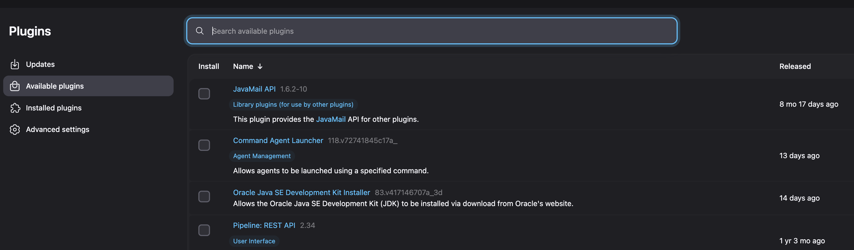 Available Plugins 항목이 존재합니다.