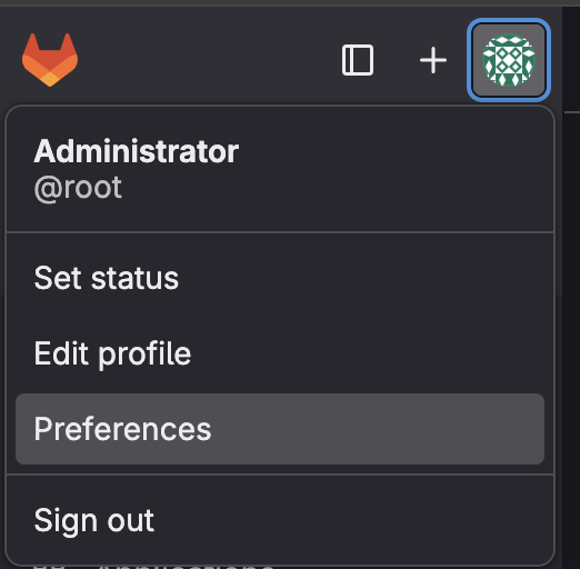 깃랩에 로그인 후, 좌측 상단 프로필 클릭, Preferences 이동