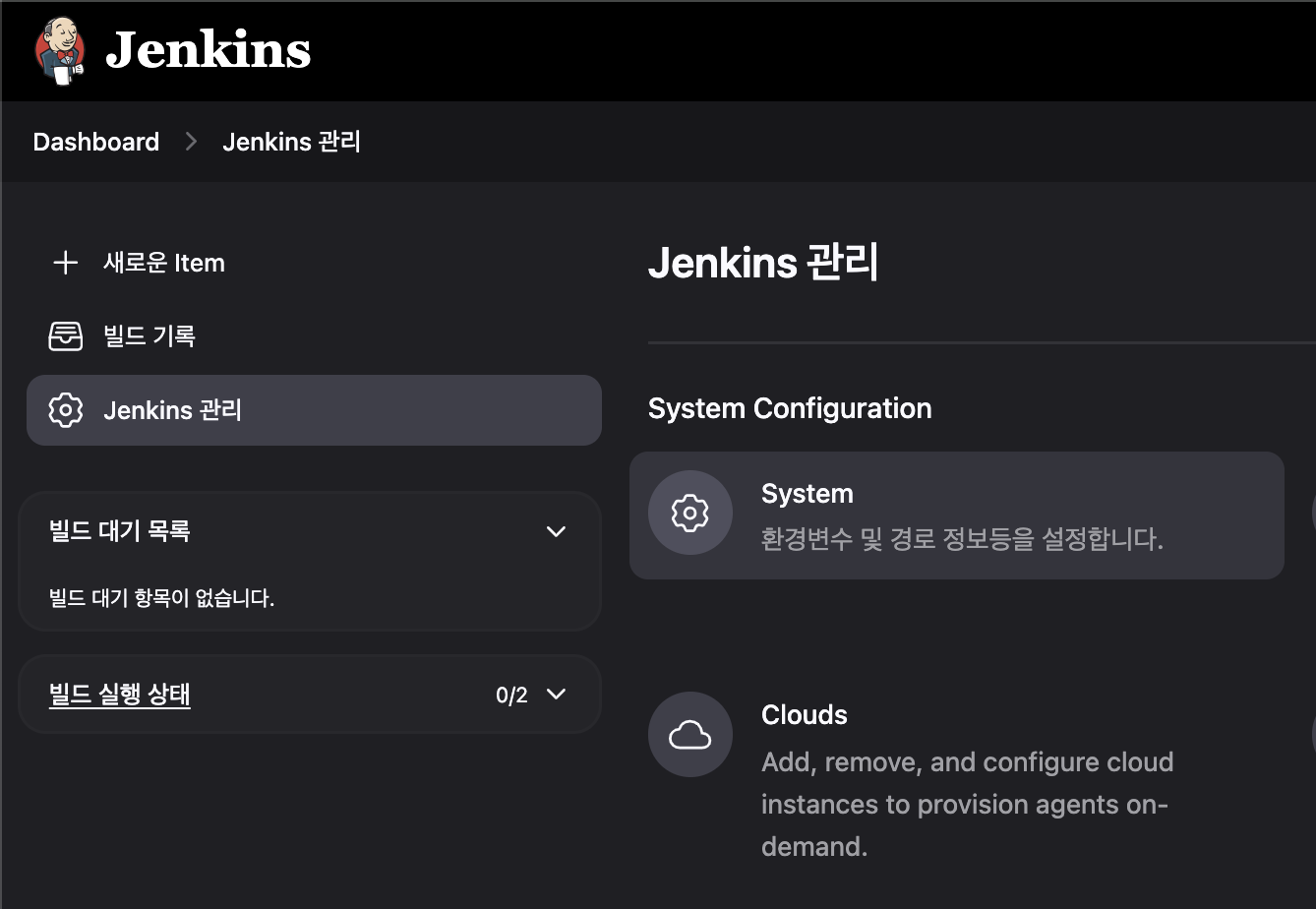 Jenkins manage, System항목을 클릭합니다.