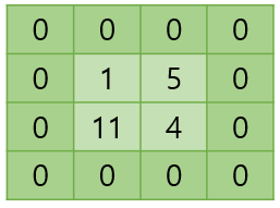 밑에 이미지는 제로패딩 1을 적용한 모습이고, 2를 적용하면 0의 값의 줄이 한 줄 더 생기게 됩니다.