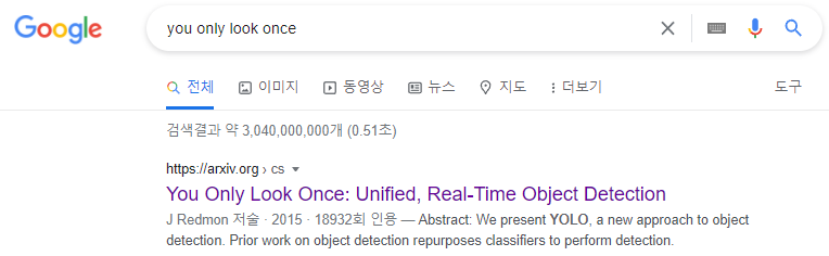 먼저 Google에 you only look once를 치시면 Real-Time Object Detcion가 뜨게됩니다.