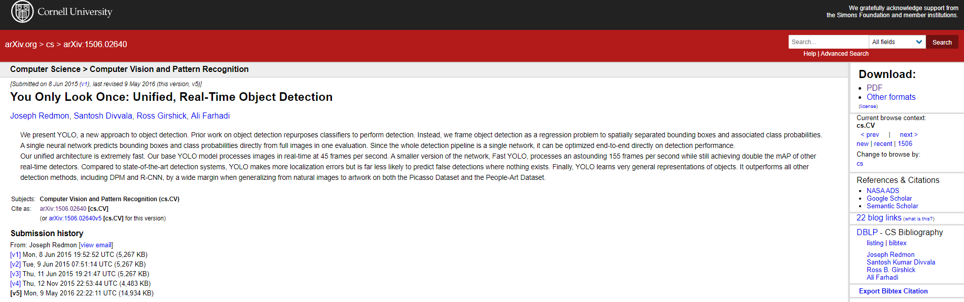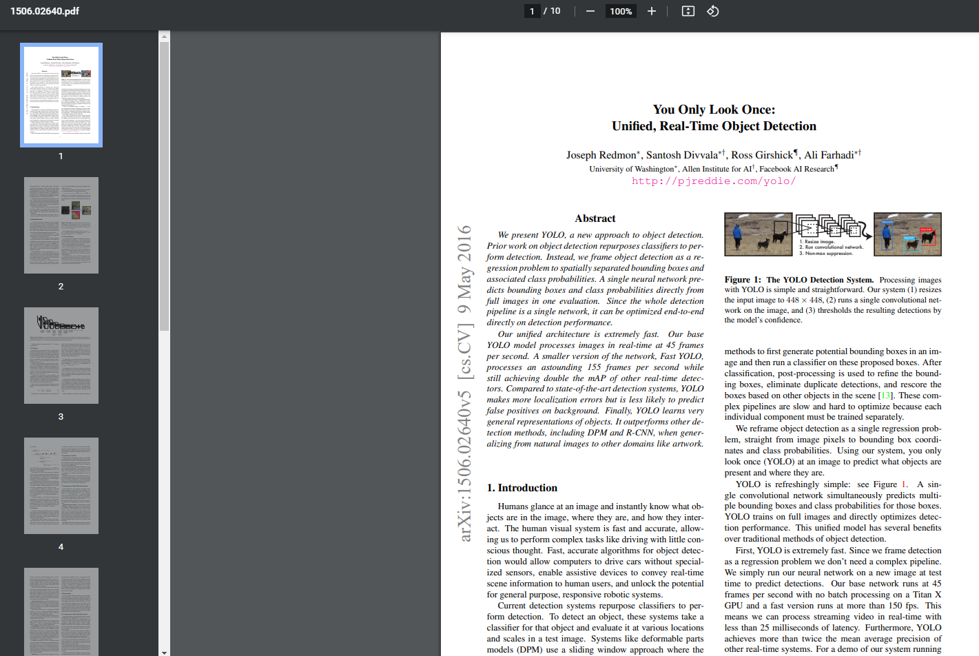 YOLO 논문을 다운받아 보도록 하겠습니다.